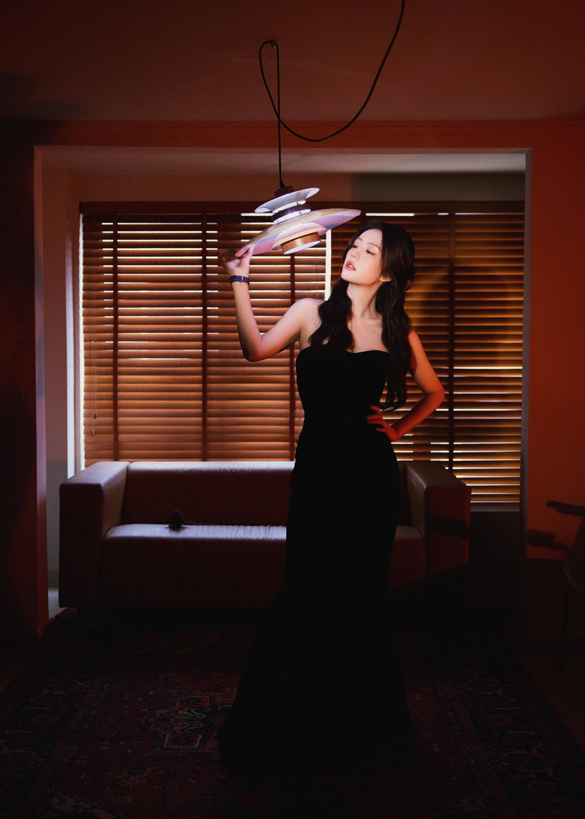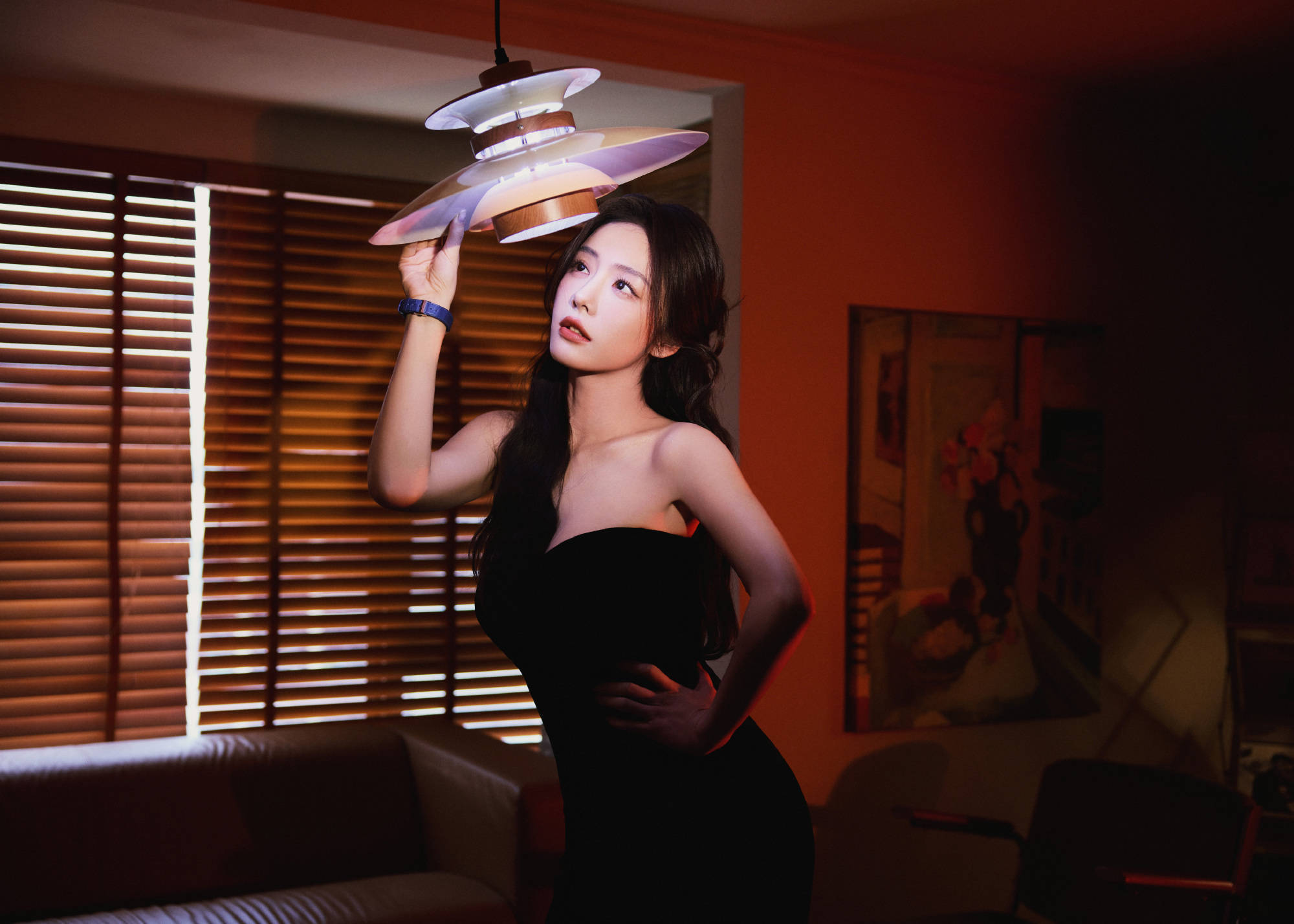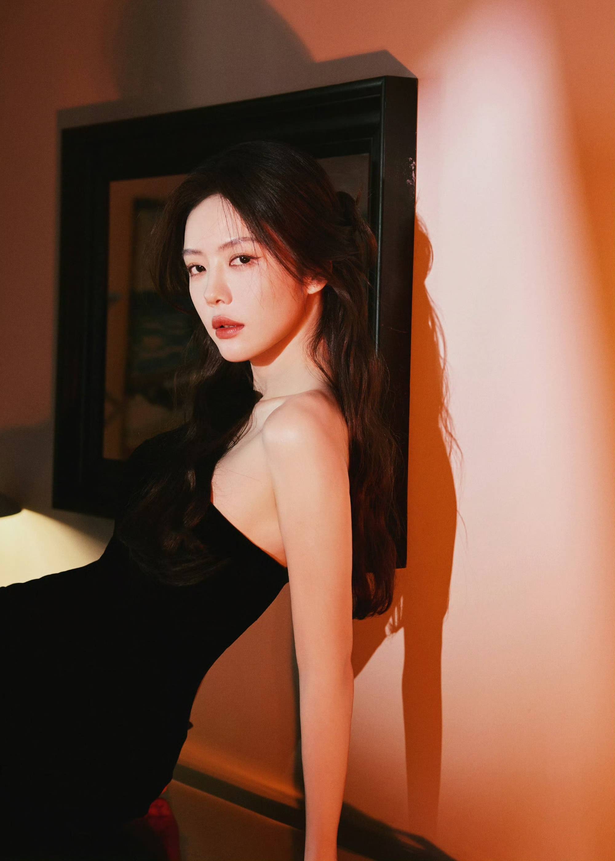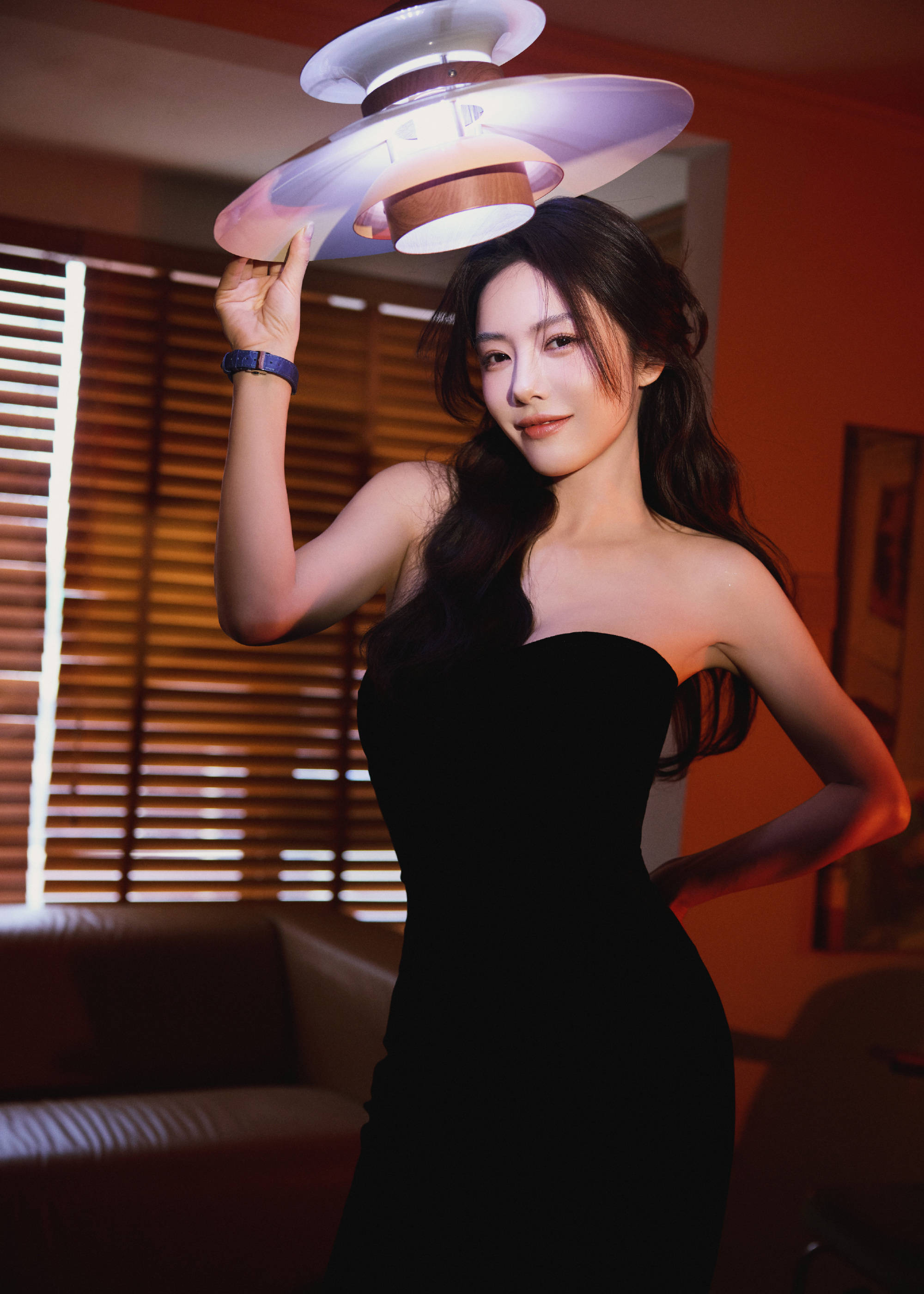 蔡文静着黑色丝绒礼裙,于光影间奏响优雅与张力协奏曲